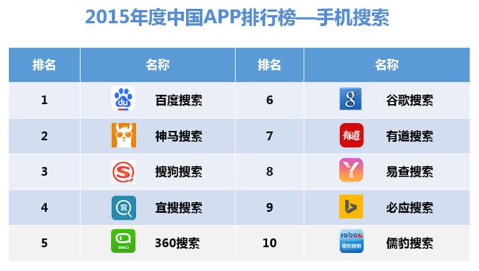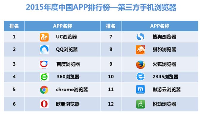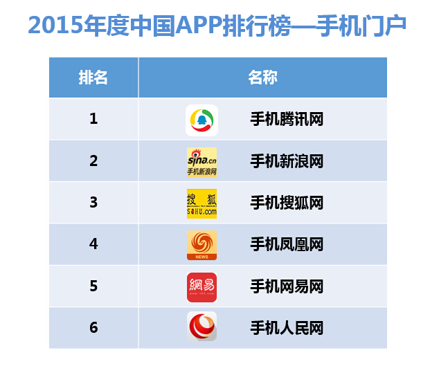 以下為《2015年度APP排行榜》具體排名: