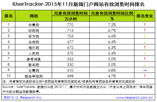 2015年11月新聞門戶網(wǎng)站行業(yè)數(shù)據(jù)分析