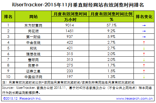 2015年11月垂直財(cái)經(jīng)網(wǎng)站行業(yè)數(shù)據(jù)分析