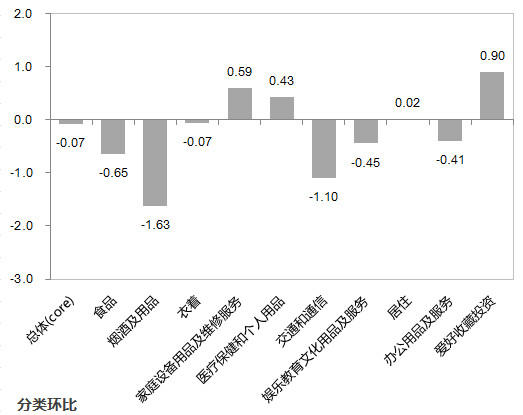 圖2 aSPI-core阿里巴巴網購核心商品價格指數分類環比變化(%)