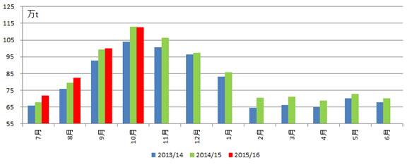 核心提示: 10月份是澳大利亞2015/16奶業年度的第4個月份,原料奶產量隨季節變化快速增長,本月為產奶高峰期之一,產量達到112.7萬t,同比減少0.5萬t,跌幅0.10月份是澳大利亞2015/16奶業年度的第4個月份,原料奶產量隨季節變化快速增長,本月為產奶高峰期之一,產量達到112.7萬t,同比減少0.5萬t,跌幅0.40%,為本奶業年度首次產量同比下跌,本奶業年度前4個月累計產奶367.0萬t,同比增長1.99%。