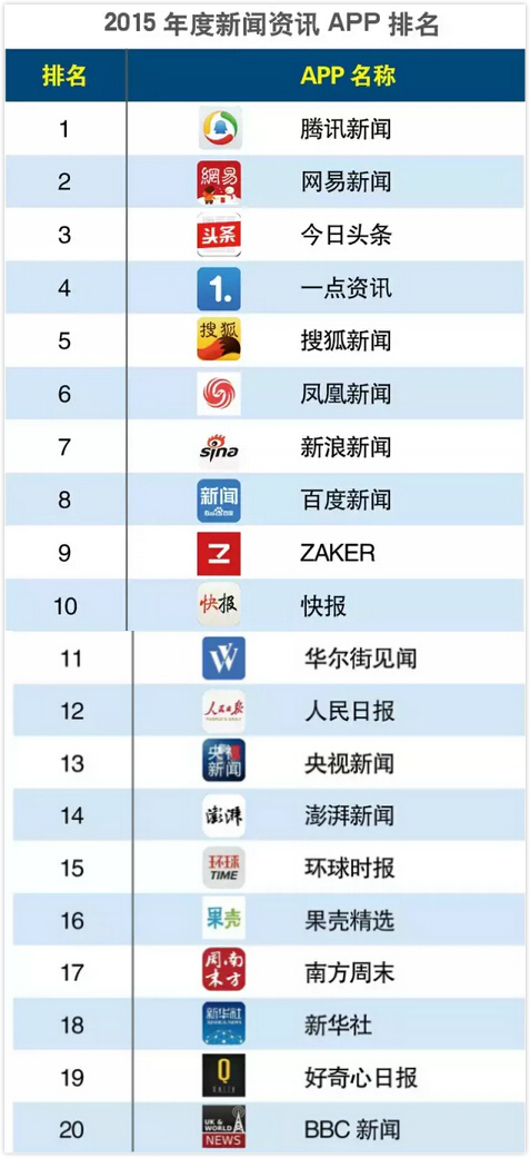 核心提示:近日,互聯網周刊發布了《2015年度APP分類榜單》,該榜單涵蓋了新聞、外賣、母嬰、社交及教育等領域。