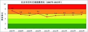 北京市歷年交通指數變化,九年來六啟單雙號行駛北京交通發展研究中心監測發現——
