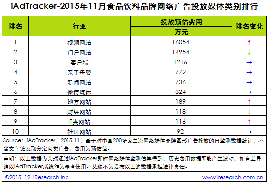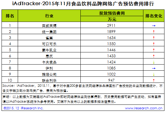 2015年11月食品飲料品牌網(wǎng)絡(luò)廣告投放數(shù)據(jù)分析