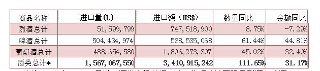 統(tǒng)計數(shù)據(jù)顯示,2015年前11個月我國進(jìn)口酒類總計15.67億升,其中葡萄酒近4.9億升,啤酒逾5億升。據(jù)了解,2015年前10個月的葡萄酒進(jìn)口總額已經(jīng)超越了2014全年3.83億升的進(jìn)口額,帶動了整個進(jìn)口酒市場的繁榮。