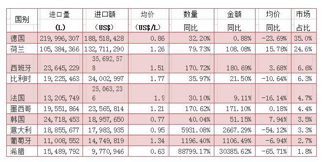 表為啤酒進(jìn)口來源地情況(注:以上表格來自中國食品土畜進(jìn)出口商會酒類進(jìn)出口商分會)
