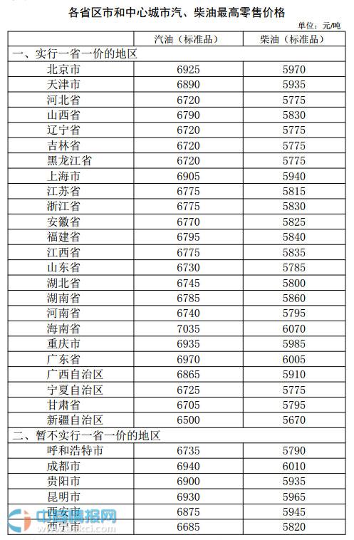成品油生產經營企業供國家儲備、新疆生產建設兵團用汽、柴油價格分別為每噸5965元和5020元;各省(區、市)和中心城市汽、柴油最高零售價格見附表。供漁業、林業、農墾用汽、柴油供應價格暫按供新疆生產建設兵團用油價格執行;其它相關成品油價格政策按《石油價格管理辦法》規定執行。