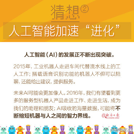 互聯網技術蓬勃發展,未來將如何變化?①虛擬現實將迎來爆發式發展;②人工智能將加速進化;③分享經濟將成為新的經濟增長點④手機安全將受到更大挑戰;⑤兩微一端邁向三微一端;⑥互聯網+在各領域突破。