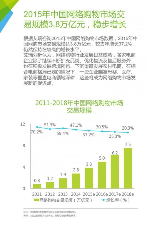 4、2015年中國網絡購物市場交易規模3.8萬億元