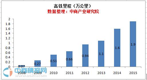中國鐵路總公司數據顯示:到2015年底,中國高速鐵路運營里程達到1.9萬公里,居世界第一位,與其他鐵路共同構成的快速客運網可基本覆蓋50萬以上人口城市。