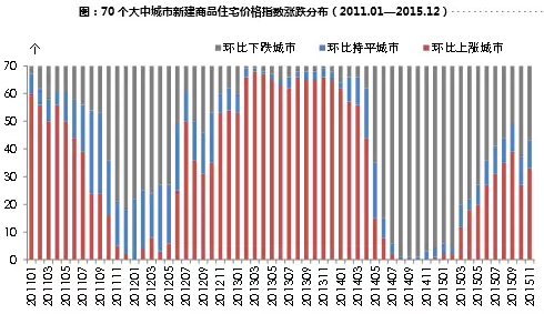 2015年12月,新建商品住宅,環比下調的城市有27個,同比下調的城市有49個;