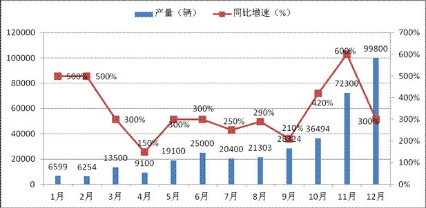 核心提示: 2015年12月,中國新能源汽車生產(chǎn)9.98萬輛,同比增長(zhǎng)3倍。其中,純電動(dòng)乘用車生產(chǎn)2.57萬輛,同比增長(zhǎng)114%,插電式混合動(dòng)力乘用車生產(chǎn)1.05萬輛,同2015年12月,中國新能源汽車生產(chǎn)9.98萬輛,同比增長(zhǎng)3倍。其中,純電動(dòng)乘用車生產(chǎn)2.57萬輛,同比增長(zhǎng)114%,插電式混合動(dòng)力乘用車生產(chǎn)1.05萬輛,同比增長(zhǎng)2倍;純電動(dòng)商用車生產(chǎn)5.78萬輛,同比增長(zhǎng)6倍,插電式混合動(dòng)力商用車生產(chǎn)5725輛,同比增長(zhǎng)51%。列入《免征車輛購置稅的新能源汽車車型目錄》前六批的國產(chǎn)新能源汽車生產(chǎn)9.18萬輛,占12月產(chǎn)量的92%。展望2016年,我們?nèi)匀幌嘈判履茉雌囈琅f會(huì)保持較高的增速。
