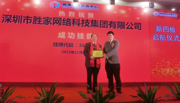 核心提示: 2016年1月18日上午,深圳市勝家網絡科技集團有限公司在前海股權交易中心隆重舉辦了掛牌敲鐘儀式,成功登陸新四板市場,標志著勝裝網邁出上市的第一步。勝裝網董事2016年1月18日上午,深圳市勝家網絡科技集團有限公司在前海股權交易中心隆重舉辦了掛牌敲鐘儀式,成功登陸新四板市場,標志著勝裝網邁出上市的第一步。勝裝網董事長及創始人邵天勝先生攜集團公司高管、陪同原深圳市市委書記李灝先生及其他相關政府及行業領導、知名投資人、投資機構以及媒體共同出席了勝裝網敲鐘儀式,一同見證了這一重要的里程碑時刻。