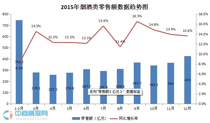 2015年全國煙酒類市場零售額數(shù)據(jù)分析