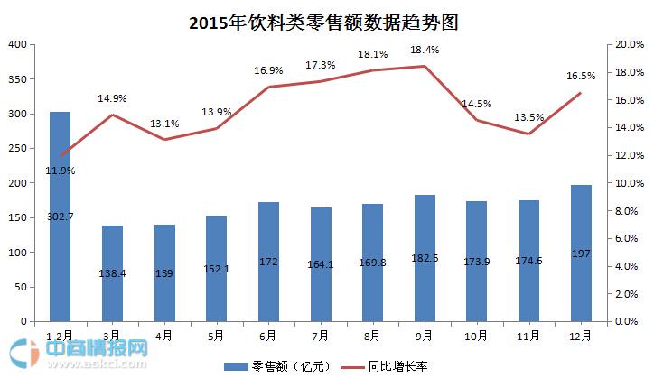 2015年全國飲料市場零售額數據分析