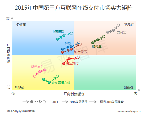 易觀智庫:2015年第三方互聯網在線支付市場實力矩陣解讀