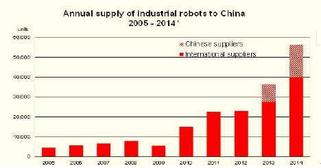 2005-2014中國工業(yè)機(jī)器人市場(chǎng)銷量快速增長(zhǎng)