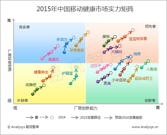 易觀智庫:2015年中國移動健康市場實力矩陣解讀