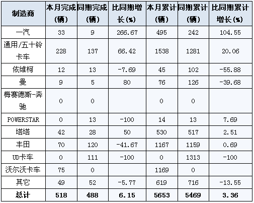 2015年12月南非重型商用車分制造商銷量統(tǒng)計