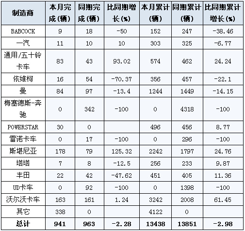 2015年12月南非超重型商用車分制造商銷量統(tǒng)計