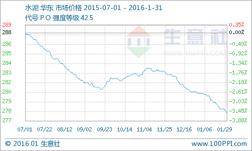 產品:據生意社了解,2016年伊始,各地水泥行情陸續進入銷售淡季,價格均以小幅下降為主,停窯面也進一步擴大,山東、河北也加入停窯大軍。北部市場表現平靜,市場反饋,元旦后華北部分地區需求也將全面停止,南部華東、中南穩中有跌,江蘇、湖南等地有價格優惠、暗降情況,西南受降雨影響,需求受到抑制,不過重慶部分價格有上調,川渝企業欲年前再次推漲,需求不佳價格調整恐難成行。1月中下旬,北方全面錯峰停窯處于進行時,市場反饋,內蒙、新疆電石渣水泥熟料線未參與錯峰,河北唐山、承德部分企業因供暖及協同處置也未參與錯峰,價格方面,除陜西、內蒙仍有走低外,其余保持平穩;南部江西再度領跌,上饒、鷹潭普跌15~20元/噸,陰雨頻繁,江浙皖熟料、水泥價格仍處于下行通道,浙江計劃年底開展春節淡季停窯,中南、西南深入淡季,價格繼續穩中有跌?傮w而言,春節前預計水泥價格仍以小幅下跌為主。