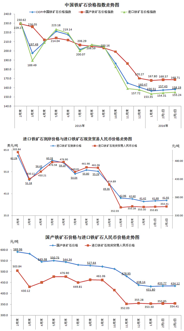 2016年2月2日中國(guó)鐵礦石價(jià)格指數(shù)對(duì)比分析