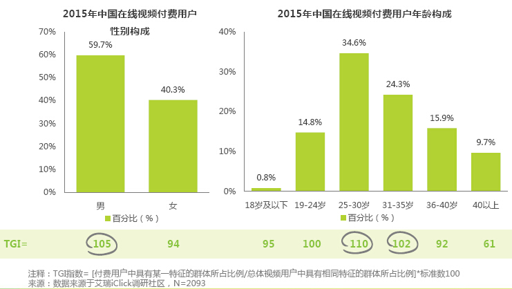 從年齡上來看,付費用戶以25-35歲用戶為主,即80后群體,80后逐漸成為社會的消費主力。