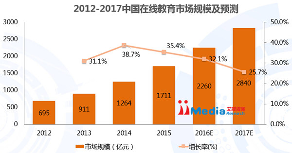 數(shù)據(jù)顯示,2015年中國在線教育市場規(guī)模超過1700億元,預計2016年中國在線教育市場規(guī)模將達2260億元。艾媒咨詢分析師認為,在“互聯(lián)網+”的政策的拖動下,在線教育市場將持續(xù)快速發(fā)展,并逐漸朝移動端發(fā)展。