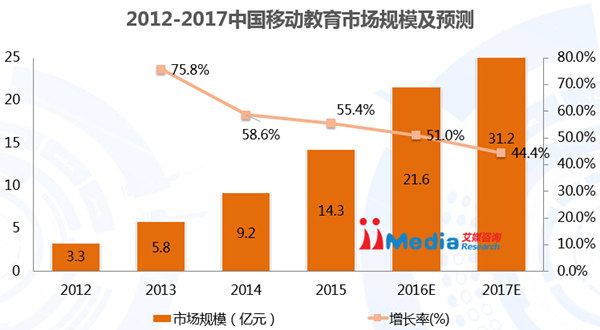 數(shù)據(jù)顯示,2015年中國移動教育市場規(guī)模達到14.3億元,預計2016將達到21.6億元。
