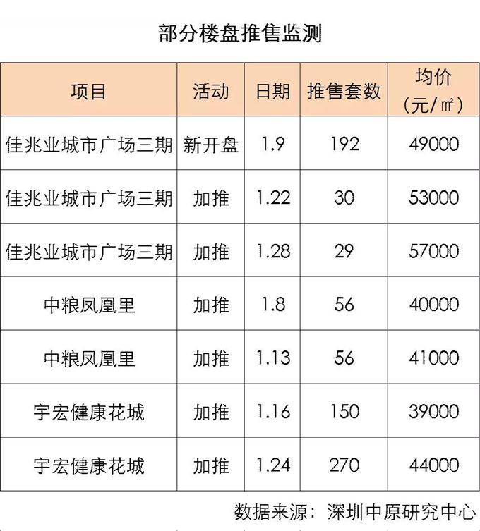 開發商由于對春節后市場不確定,在沒有業績壓力的情況下,以高價少量多次方式試探性推盤。本月共有20個項目入市,100套以下的有12個,為2015年以來的最高;同時佳兆業城市廣場本月加推三次,中糧鳳凰里也加推兩次。開發商定價激進,很多項目價格上升明顯,均價超過5萬/㎡的樓盤占到了入市項目的一半,佳兆業城市廣場、信義嘉御山較前期價格幾乎翻倍。