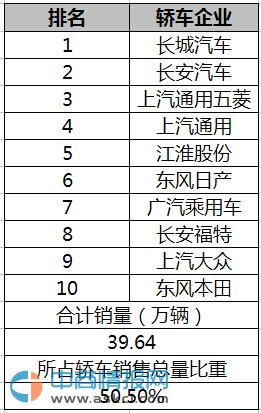 2016年1月前十家SUV生產企業銷量排名:長城汽車第一