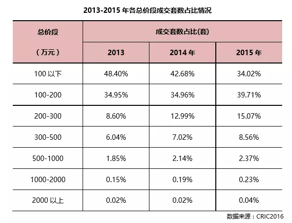 總價段方面,2015年南京100萬以下住宅成交3.8萬套,成交占比下滑了8.7個百分點;100-200萬成交4.4萬套,200-300萬成交1.6萬套,成交占比均有不同程度上升。