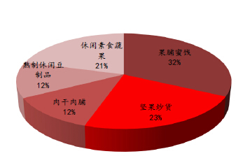 圖表:堅果炒貨占國內休閑食品行業規模的23%