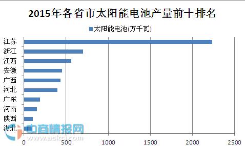 2015年全國太陽能電池產量前十排名:江蘇位居榜首