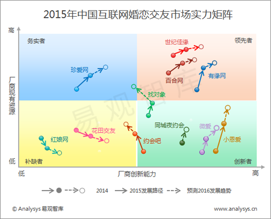 易觀智庫:2015年中國互聯網婚戀交友市場實力矩陣解讀