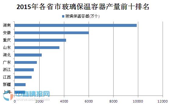2015年全國(guó)玻璃保溫容器產(chǎn)量前十排名:湖南位居榜首