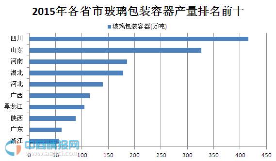 2015年全國玻璃包裝容器產量前十排名:山東位居榜首