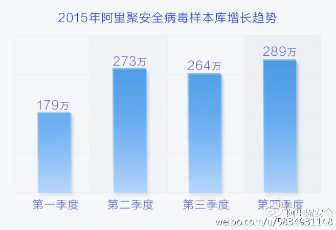 2015年,阿里聚安全查殺病毒總量高達3億,新增1005萬病毒樣本,總病毒庫中惡意扣費類樣本占比67%,每5.6臺安卓設備中就有1臺感染病毒。