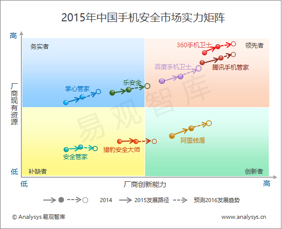 易觀智庫:2015年中國手機安全市場實力矩陣解讀