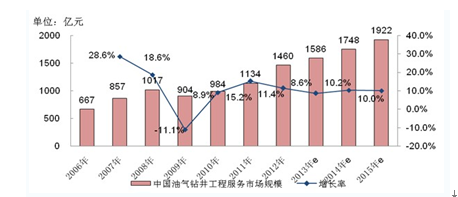 2006-2015年中國油氣鉆井工程服務市場規(guī)模
