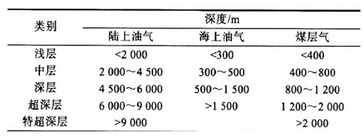不同油氣的類型對深度的劃分