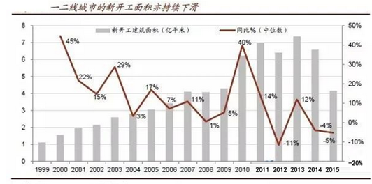 三四線城市的房地產市場面臨著高庫存和弱需求,尤其當前宏觀經濟低迷,我們預計2016年三四線城市房地產銷量將下降10%,銷售均價將下跌5%。