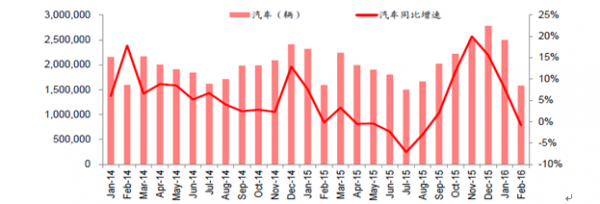 2016年2月份中國汽車行業市場銷量情況統計及投資策略分析