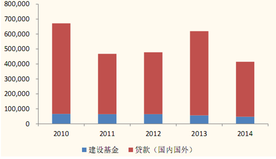 2010-2014年鐵總建設基金及貸款金額走勢