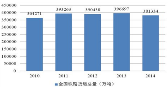 2010-2014年全國鐵路貨運(yùn)總量