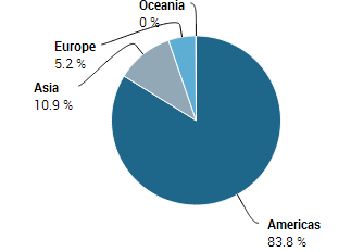 美洲和亞洲是全球高粱(畜牧料)主要產(chǎn)區(qū),其中美洲產(chǎn)量為總產(chǎn)量的83.8%,亞洲產(chǎn)量占全球產(chǎn)量的10.9%。