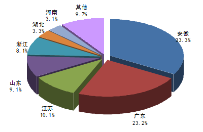 核心提示:中國(guó)產(chǎn)業(yè)發(fā)展研究網(wǎng)發(fā)布的《2016-2022年中國(guó)低溫制冷設(shè)備市場(chǎng)專項(xiàng)調(diào)研及未來前景預(yù)測(cè)報(bào)告》指出:2015年1-9月我國(guó)安徽省冰箱產(chǎn)量為2376.60萬臺(tái),占同期國(guó)內(nèi)總產(chǎn)量的33.3%;廣東省冰箱產(chǎn)量為1660.48萬臺(tái),占同期國(guó)內(nèi)總產(chǎn)量中國(guó)產(chǎn)業(yè)發(fā)展研究網(wǎng)發(fā)布的《2016-2022年中國(guó)低溫制冷設(shè)備市場(chǎng)專項(xiàng)調(diào)研及未來前景預(yù)測(cè)報(bào)告》指出:2015年1-9月我國(guó)安徽省冰箱產(chǎn)量為2376.60萬臺(tái),占同期國(guó)內(nèi)總產(chǎn)量的33.3%;廣東省冰箱產(chǎn)量為1660.48萬臺(tái),占同期國(guó)內(nèi)總產(chǎn)量的23.2%;江蘇省冰箱產(chǎn)量為721.78萬臺(tái),占同期國(guó)內(nèi)總產(chǎn)量的10.1%;山東省冰箱產(chǎn)量為652.62萬臺(tái),占同期國(guó)內(nèi)總產(chǎn)量的9.1%。