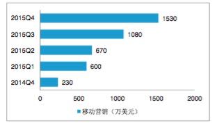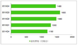 2015年第四季度,陌陌移動營銷收入1530萬美元,占比39%,會員訂閱收入1460萬美元,占比37%。從增長趨勢上看,之前的第一大收入來源——會員訂閱占比不斷下降,會員費收入也首次出現(xiàn)下滑,環(huán)比下降8.8%。