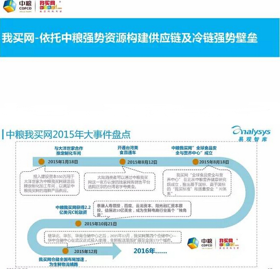 近日,易觀智庫發布《中國生鮮電商市場年度盤點報告2016》,報告對中國中國生鮮電商市場的發展現狀及未來趨勢進行了分析,下面我們來了解一下中國生鮮電商市場典型代表企業: