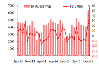 陜西煤炭月度產量(單位:萬噸,%)